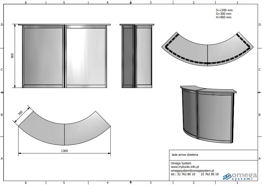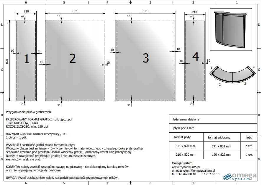 - konstrukcja lady wykonana z profili aluminiowych anodowanych – kolor srebrny matowy