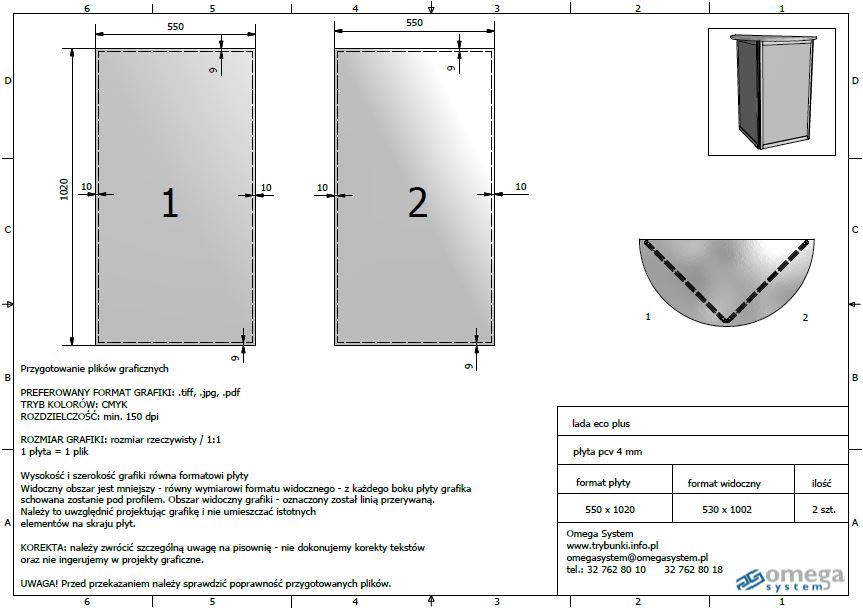 - płaszczyzny wypełnione lekką płytą pvc (kolor biały) – bez wydruku lub z wydrukiem