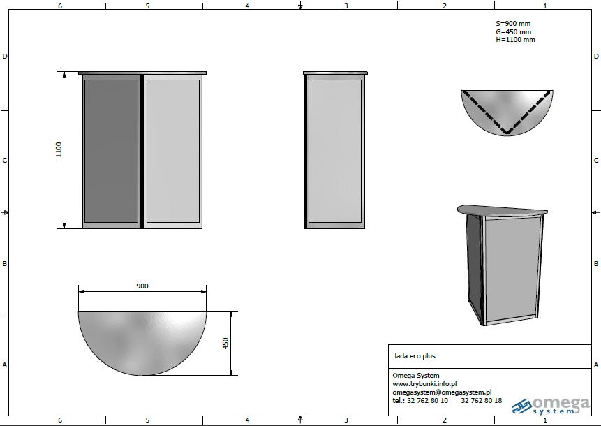 - lada wykonana z profili aluminiowych anodowanych – kolor srebrny matowy