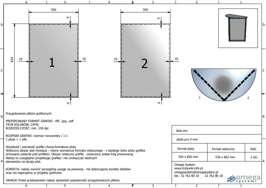 - płaszczyzny wypełnione lekką płytą pvc (kolor biały) – bez wydruku lub z wydrukiem
