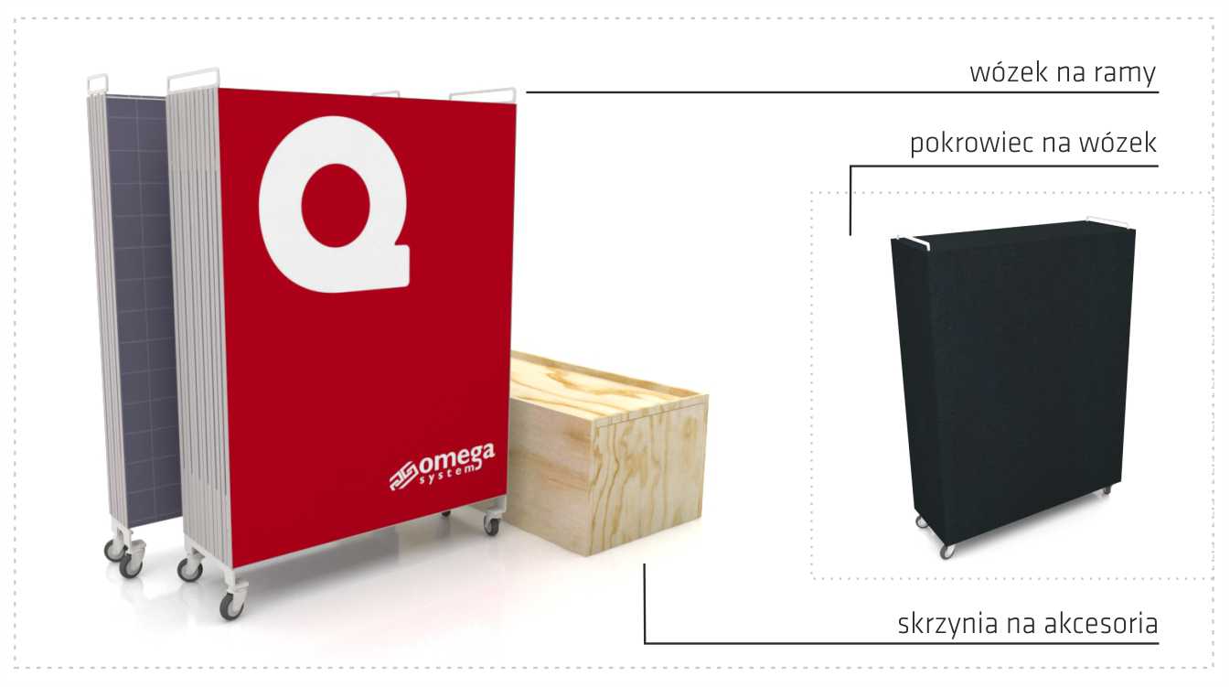 - 1 wózek na 6 ram oraz pokrowiec zabezpieczający ramy