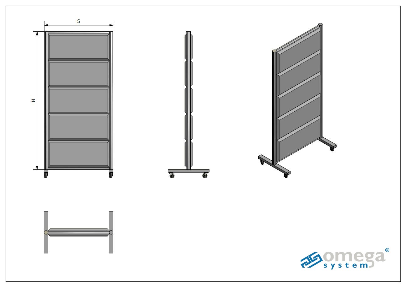 - podstawy z kółkami, wykonane z profili aluminiowych