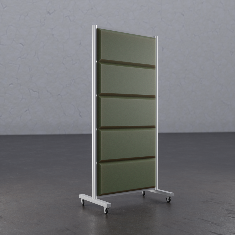 Konstrukcja wykonana z solidnych i estetycznych profili aluminiowych. Zastosowane wypełnienie to gąbka akustyczna zapewniająca najwyższy poziom absorpcji dźwięku (dla paneli o grubości 5 cm i większej: 0,95s, klasa A)