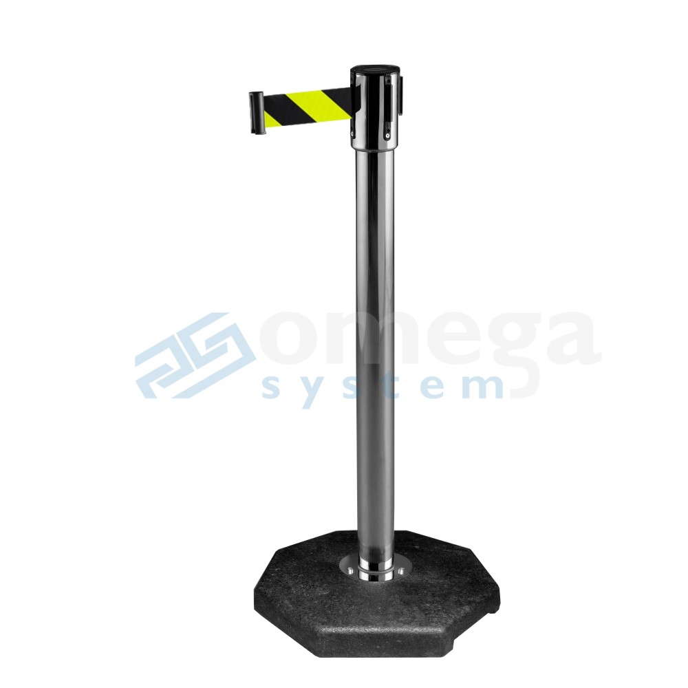 - słupek wyposażony w mechanizm spowalniania wciągania taśmy umożliwiający bezpieczne jej zwijanie