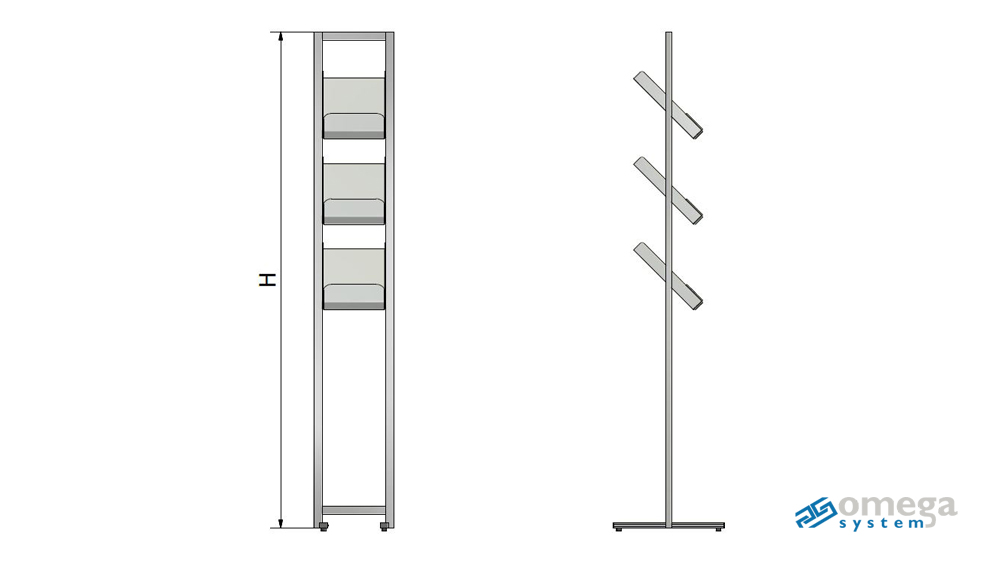 Stojak wymaga użycia narzędzi – za pomocą klucza imbusowego należy przykręcić kieszenie na ulotki oraz tablicę