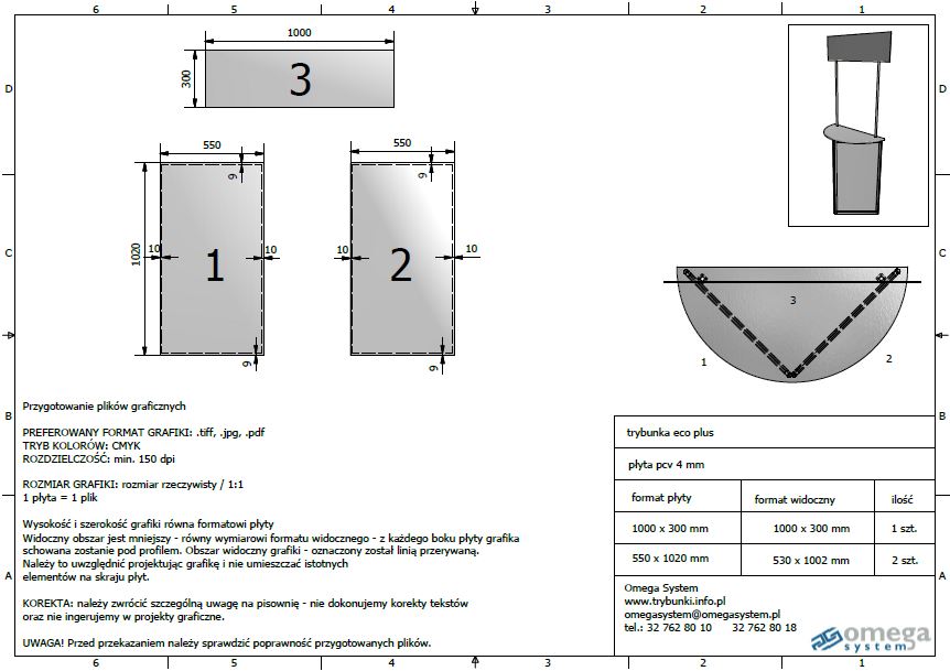 - płaszczyzny wypełnione lekką płytą pvc (kolor biały) – bez wydruku lub z wydrukiem